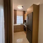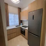 Wyposażona kuchnia z lodówką i piekarnikiem pozwala na przygotowanie własnych posiłków w apartamencie.